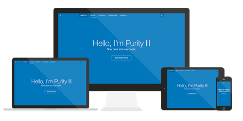 Purity III is a fully responsive Joomla template. It looks amazingly beautiful in all screen sizes: from a wide screen desktop to tablet and mobile devices. All props go to the powerful T3 Framework.